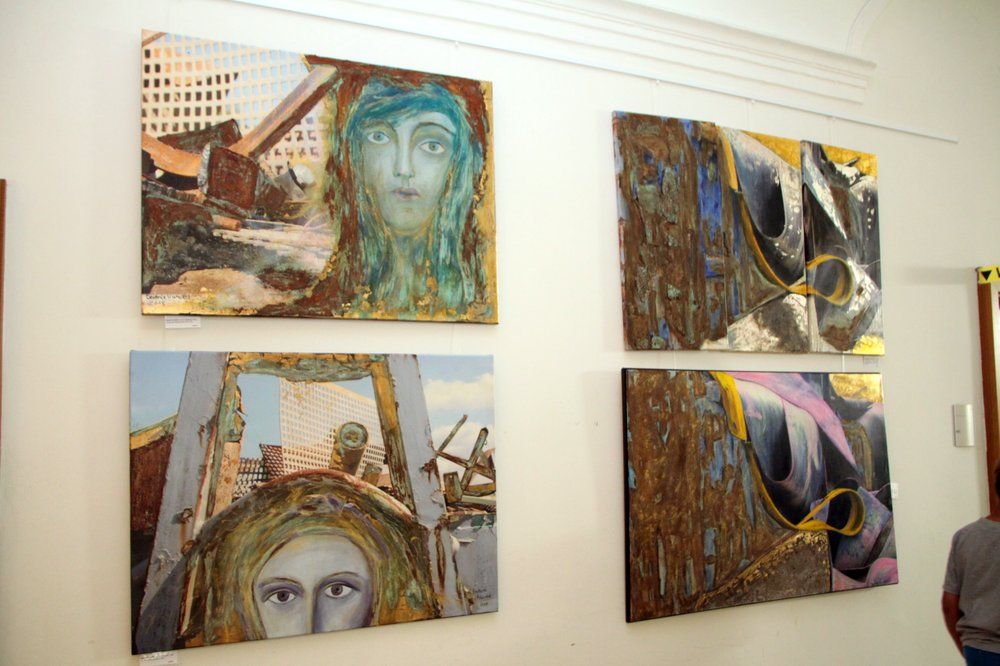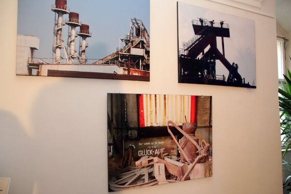 Die Neu-Ensdorfer: Beatrice Nunold arbeitet mit einer großen Bandbreite von Materialien in Acrylbildern, Zeichnungen, Fotoübermalungen sowie Objekten und Installationen. Sie erweitert das Spektrum der Ensdorfer Ausstellung um eine politische Variante. Uwe Könemann-Nunold ist leidenschaftlicher Fotograf. In bearbeiteten Fotografien auf Leinwand gedruckt und in Originalfotografien dokumentiert er die Ästhetik der über 150 Jahre alten Industrieanlage Maxhütte bei der man noch die Funktion nachvollziehen kann aber auch deren Verfall.