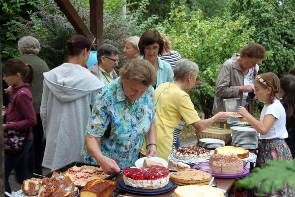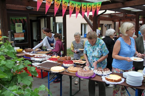 Trotz unbeständigen Wetters waren viele Erwachsene und noch mehr Kinder der Einladung von Kloster Salesianischen Mitarbeitern und dem Offenen Treff gefolgt und ließen es sich bei Kaffee und vielen leckeren Kuchen, den Mütter der Kinder des Offenen Treffs gebacken hatten, gut gehen. Mit dem Erlös des Verkaufs wird das Projekt „Eine Heimat für Ebola-Waisen“ von Salesianerpater Lothar Wagner in Sierra Leone unterstützt.