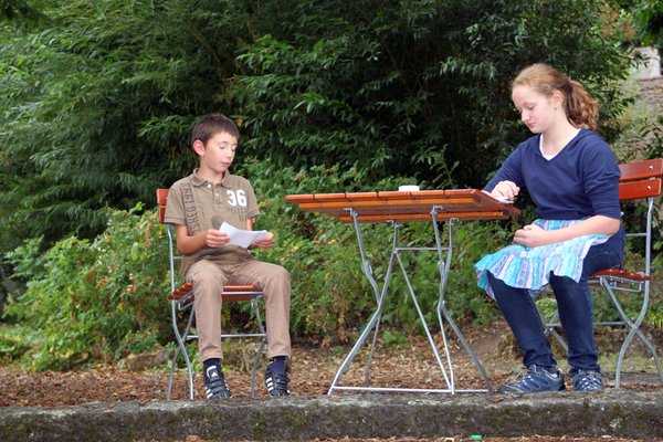 Zehn Kinder des Offenen Treffs spielten im Klosterpark ganz gekonnt und originell kostümiert vier beispielhafte Szenen aus dem Leben Don Boscos: Als der kleinen Giovanni