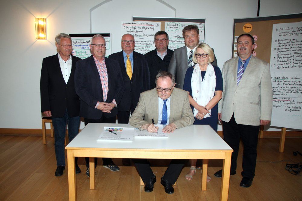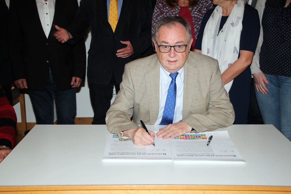 Manfred Lehner, Leiter der Volkshochschule, ging ausführlich auf Aufgaben, Arbeitsweise und Termine des Rates für Nachhaltigkeit für den Landkreis Amberg-Sulzbach wie den Organisationsrichtlinien auf Grundlage des Kreistagsbeschlusses vom Dezember 2017 ein, bevor in Vertretung von Landrat Richard Reisinger stellvertretender Landrat Hans Kummert, alle Fraktionsvorsitzenden des Kreistages sowie die anderen Akteure die „Konstituierungsurkunde des Rates für Nachhaltige Entwicklung des Landkreises Amberg-Sulzbach“ mit dem Wortlaut unterzeichneten: