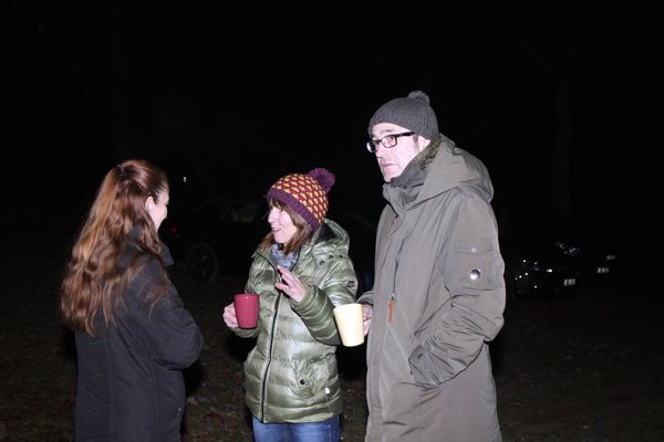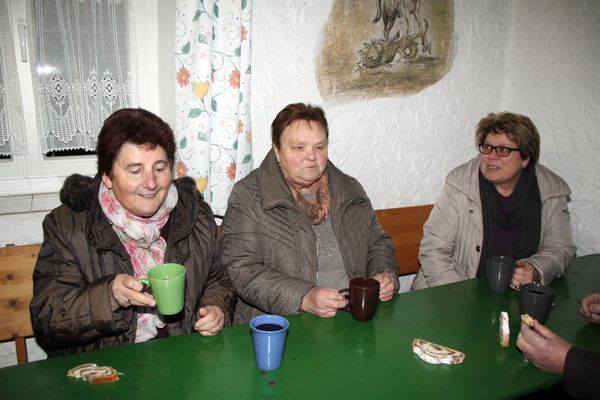 Derweil hatten draußen fleißige Mitarbeiter des Schnupfer-Clubs vor dem Eggenberghaus ein wärmendes Feuer angezündet, an dem und an den Schwedenöfen sich die Gottesdienstbesucher äußerlich wärmen konnten. Zum „inneren Aufwärmen“ gab es heißen Glühwein und Stollen zur Stärkung, die auch im wohlig warm geheizten Eggenberghaus schmeckten, für den Abstieg aus den Höhen des Hirschwaldes. Anschließend begingen die Mitglieder des Schnupfer-Clubs im Vereinslokal Gasthaus Dietz bei saueren Bratwürstln den weltlichen Teil ihrer Weihnachtsfeier.