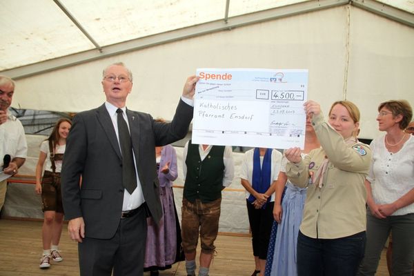 „Diese enorme Summe ist der Erlös des bei sommerlichen Wetters im Kirchenvorhof stattgefundenen Jubiläumsfestes „300 Jahre Asam-Kirche Ensdorf“, organisiert von der Kirchenverwaltung, bei dem sich die örtlichen Vereine und Institutionen einbrachten“, erklärte Kirchenrat Martin Sollfrank.