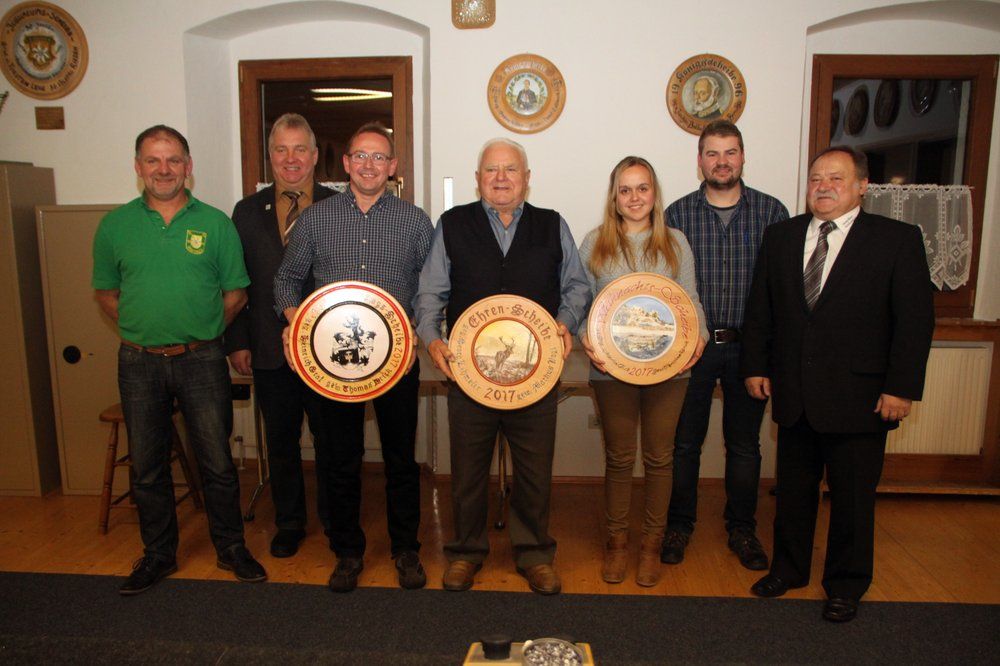 Die Ehrennadel des Präsidenten Franz-Heinrich von Schönfels für „aktives Sportschießen im Verein2 wurde mit Urkunde verliehen: in Grün für 10 Jahre an Georg Dotzler; in Bronze für 15 Jahre an Patrik Marschall, Martin Eck und Heinrich Graf; in Silber für 20 Jahre an Stephanie Eichenseer und Anita Dotzler; in Gold für 25 Jahre an Emma Riedl. Für 30 Jahre wurden Joachim Baldauf und Thomas Drick mit der Sebastianus-Nadel ausgezeichnet.
