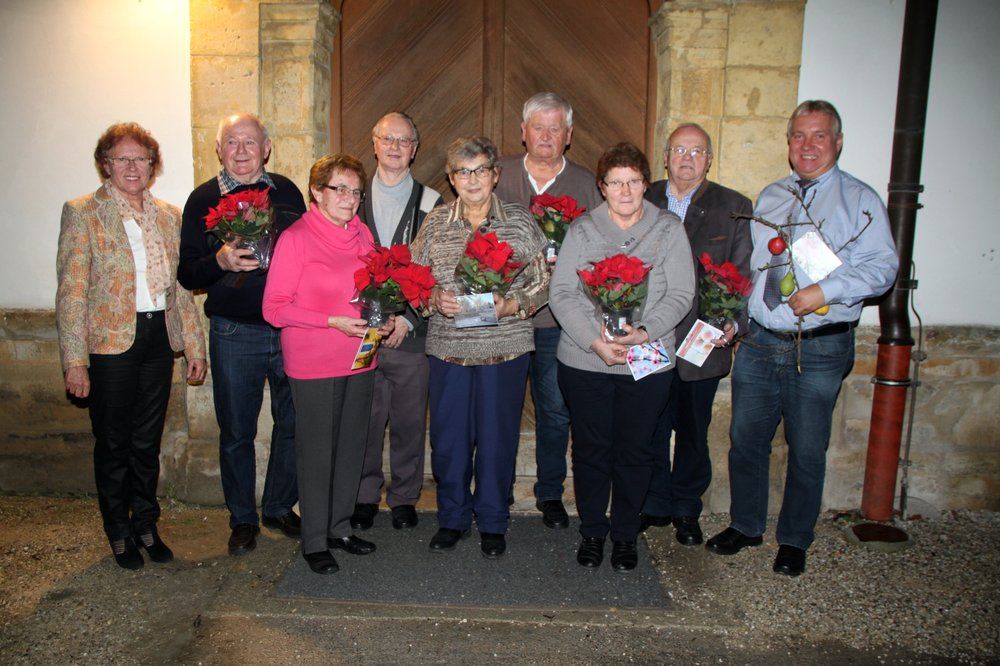 bekannteste Symbol der Adventszeit – der Vorweihnachtszeit. Doch er müsste anstatt der vier Kerzen wohl viele tausend Lichter haben, um all die Finsternis aufzuhalten, die sich um uns, in der Welt ausbreitet. Nach wie vor existiert die ‚Dunkelheit des Machtstrebens, des Neides, der Besitzgier und des Terrorismus - nach wie vor werden in unserer Welt Menschen verachtet, unterdrückt, verfolgt, ausgebeutet und gefoltert.“ Gemeinsam wurden vorweihnachtlichen Liedern wie „Macht hoch die Tür“, „Tauet Himmel“, „Oh Heiland reiß’ die Himmel auf“, „Macht hoch die Tür“ und „Oh Tannenbaum“ gesungen. Nach dem gemütlichen Teil mit Glühwein, Kuchen und Stollen, Nüssen, Äpfel und Mandarinen nahm OGV-Vorsitzende Renate Kastl die Prämierung für den Blumenschmuck 2018 vor.