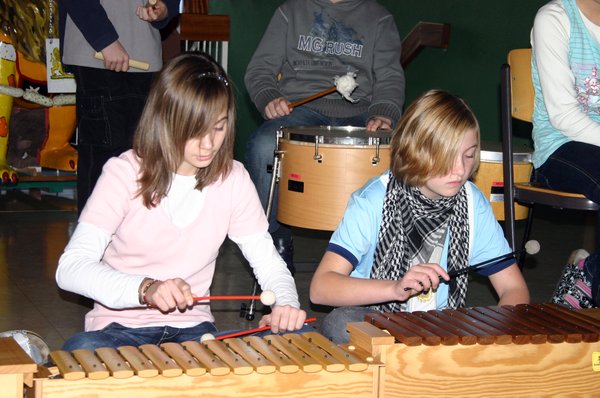 Christine Dechant und Marie Laase sprachen einen Dialog über das Warten. Worauf wartest du? Auf bessere Zeiten, die Pause, schönes Wetter, die Ferien und Zeit zum Spielen, Party machen. Worauf wartest du wirklich? Auf ein freundliches Wort, ein liebevolles Lächeln, auf ein: Hey, schön, dass du da bist. Und worauf wartest du wirklich – da drin – im tiefsten deines Herzens? Darauf, dass mich die anderen mögen; dass ich so gesehen werde, wie ich wirklich bin; dass ich mich nicht mehr verstellen muss und trotzdem zu hören kriege: „Hey, du bist gut, so wie du bist!“ Das ist es, worauf alle warten. Immer wieder –jeden Tag! Dass ich angenommen und geliebt bin .egal, was ich alles drauf habe oder eben nicht drauf habe – einfach nur angenommen und geliebt sein, wie ich bin. Und dann ändert sich etwas: Dann tut sich etwas auf, wird etwas möglich, was bis jetzt als unmöglich gegolten hat, dann werde ich frei. Dann weicht jeder Druck von mir, jeder Stress, jede Anstrengung, dann werde ich offen für mich – für andere. „Dann spürst du etwas, was so selten wirklich den Weg in dein Innerstes, in dein Herz findet: Glück, echte tiefe Freude, Liebe. Dann spüre ich: Es lohnt sich wirklich zu leben!“ Die Orff-Gruppe begleitete das Lied „Im Advent, im Advent, ist ein Licht erwacht.“