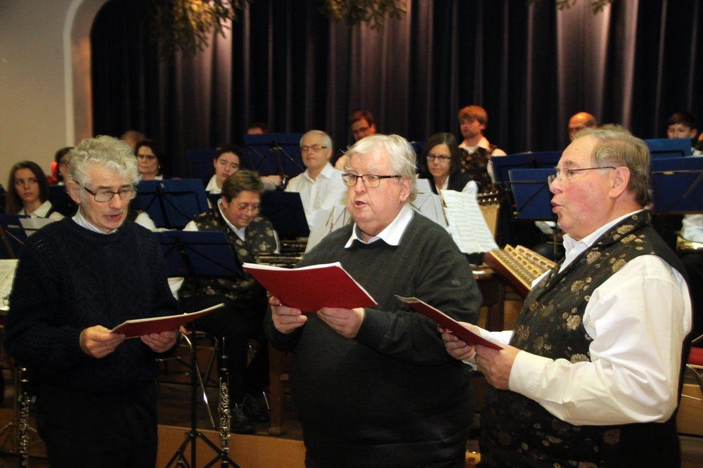 Mit der „Aria“ führte die Don-Bosco-Blaskapelle unter Bayerls Leitung in den Abend ein, beim „Tauet, Himmel, den Gerechten …“ waren die Zuhörer zum Mitsingen aufgefordert. Die „Mittendorfer Redoute“ brachte die Ensdorfer Stubenmusik“ – Irmgard Dirmeier auf der Zither, Inge Rogenhofer an der Gitarre und Bruder Georg Bayerl am Hackbrett – zu Gehör. Beeindruckend „In Nacht und Dunkel …“ des Männer-Dreigesangs (Pater Ernst Kusterer, Bruder Eduard Moßburger und Bruder Georg Bayerl.