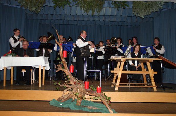 Musikalisch endete die Adventliche Stund mit „Mineth aus Chrobold“, von allen gesungen „Macht hoch die Tür …“ und einer „Pastorale“ der Bläser.
