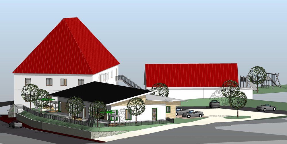 „Die zweigruppige Kinderkrippe wird eingeschossig in massiver Bauweise mit hochdämmenden Ziegeln und einem versetzten Pultdach, eingedeckt mit Betondachsteinen und Stehfalzblechen errichtet“, erläutert der planende Dipl.-Ing. Thomas Hollweck unserer Zeitung. „Der Haupteingang zum Kindergarten und zur Kinderkrippe erfolgt über einen barrierefreien Verbindungsbau. Der großzügig verglaste Verbindungsbau erhält ein Flachdach mit Kiesauflage.“ Dieser barrierefreie Verbindungsbau hat rund 70 Quadratmeter Grundfläche, die Kinderkrippe 388 Quadratmeter. Die zweigruppige Kinderkrippe ist für je zwölf Kinder gedacht, bietet also 24 Kinderkrippenplätze. Die Gruppenräume und Gruppennebenräume haben je 51 Quadratmeter Nutzfläche. Dazu kommen Büro für die Leitung und eine Personalküche mit Aufenthaltsraum sowie sanitäre Anlagen . Der Außenbereich umfasst rund 250 Quadratmeter Spiel- und Freifläche. Der zukünftige Zugang zum Kindergarten und zur Kinderkrippe erfolgt an der rückwärtigen Gebäudeseite über den gemeinsamenbarrierefreien Verbindungsflur. 16 Parkplätze gibt es im rückwärtigen Grundstücksbereich. Somit entfällt das Parken auf der Hauptstraße. Einen Kinderwagenstellplatz gibt es direkt vor der Kinderkrippe. Im Zuge des Kinderkrippenbaus wird auch die Bushaltestelle an der Hauptstraße direkt zur Kinderkrippe verlegt.