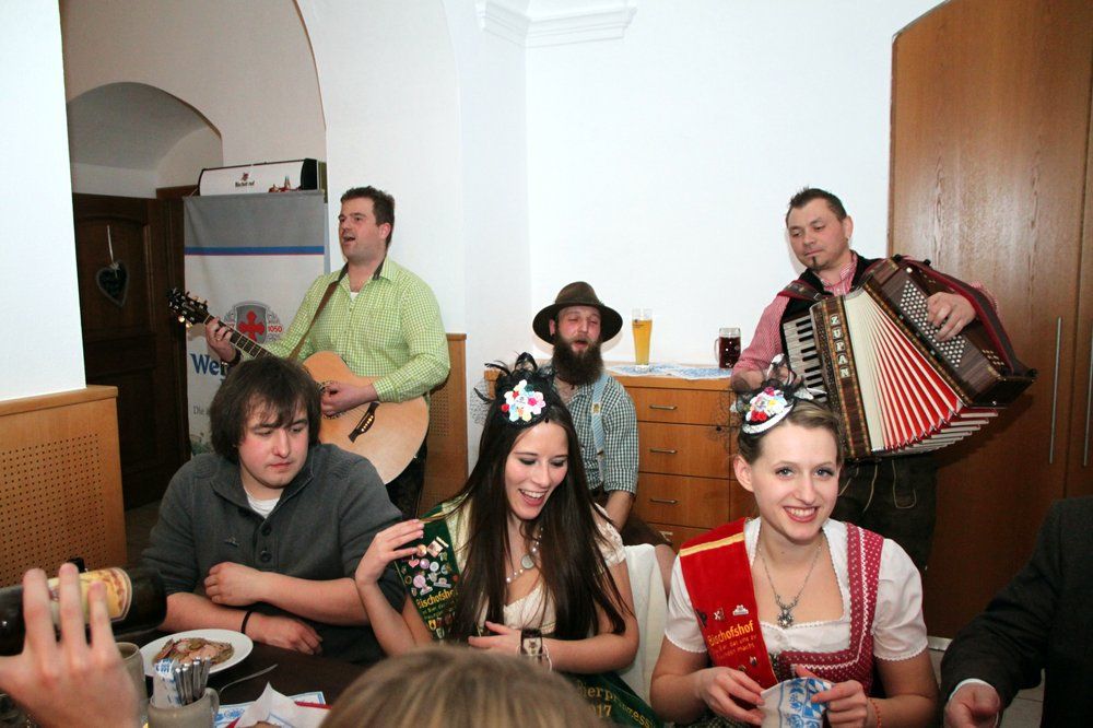 Musikalisch sorgten die Wirtshausmusikanten „D´Stoderer & Er“ für zünftige Musik mit handgemachter und unverstärkter Volksmusik. Zur Freude der Bockbierfreunde gingen die Musikanten in alter Manier mit Akkordeon, Gitarre und Cajon von Tisch zu Tisch und zwischen den Gasträumen hin und her, denn ein Saal war zu wenig für die Gäste. Dabei sangen sie nicht nur „Ein Prosit der Gemütlichkeit“ und „Oans, zwoa, gsuffa!“sondern u. a. auch passend: „Des is des echte, gsüffige, gschmackige boarische Bier!“
