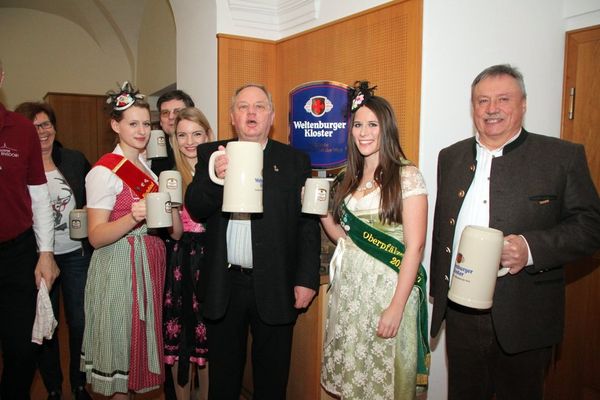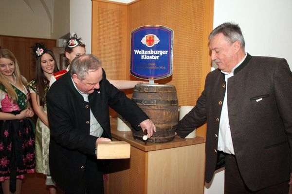 Der traditionelle Bockbieranstich zum Beginn der „Fünften Jahreszeit“ im Kloster Ensdorf fand am Samstag in den Kreuzgangsälen statt. Direktor Pater Christian Liebenstein zapfte, assistiert von Braumeister Wolfram Seebauer ganz gekonnt das erste Fass an: mit nur vier kräftigen Schlägen ohne einen Tropfen des edlen Gerstensaftes verspritzen zu lassen. Viel Charme verbreiteten Bierkönigin Julia II. und ihre ihr assistierenden Bierprinzessinnen Lisa I. und Valerie I.