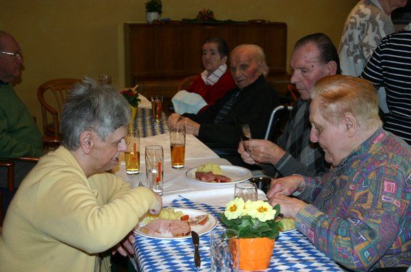 Richtig gut schmeckte allen, der von „Schankkellner“ Hausmeister Georg Faulhaber ausgeschenkte süffige Bock! Dazu die saftiger heißer ofenfrischer Leberkäs und Surbraten, das zünftige Brotzeitbüfett mit hausgemachten Kartoffel- und Wurstsalaten, Geräuchertem, Presssack, Käseplatte, Radieschen und Rettichen, frischen Brezen oder Schnittlauchbrot von „Chefkoch“ Mario Hellerl! Ein echter Genuss!