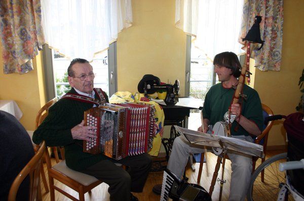 Und alle – Bewohner wie Gäste – fielen ein: „In Ensdorf steht ein Seniorenhaus, oans, zwoa, gsuffa! Heut läuft dort so manches Fässchen aus, oans, zwoa, gsuffa. Wir haben es bewiesen und halten uns dran, oans, zwoa, gsuffa. Es trinkt jeder nur soviel er vertragen kann, um 16 Uhr, da fing es an. Bis spät werden wir zusammen sein. So schön ist es in unserem Heim!“