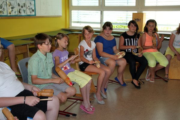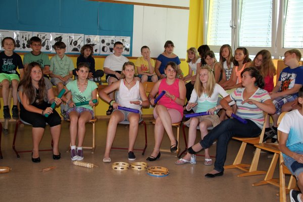 „Die Idee zu dem Wettbewerb ist in den Köpfen der Mädchen der Cajon-Gruppe der 7. Klasse entstanden“, erklärt Lehrerin Agnes Krammer. „Jamie Lee Weigert, Valeria Löwen, Elena Hecht und Annalena Priefling leierten ihn an. Ich finde es nur schade, dass sich keine andere Schule der Herausforderung stellte. Vielleicht wird es ja nächstes Jahr besser“, hofft sie. So musste der Wettbewerb, für den als Preis ein Trommelworkshop mit Eckhard Kopetzki in der Berufsfachschule für Musik in Sulzbach-Rosenberg ausgelobt war, schulintern durchgeführt werden. Lehrerin Krammer bedauert auch, dass die vielen Cajones, die Oberpfalzweit schon in der Umweltmusikwerkstatt Kloster Ensdorf unter Anleitung von Stefan Huber gebaut wurden, von vielen scheinbar kaum genutzt werden. „Bei uns an der Schule ist das anders, Mit Cajones kann man so viel Tolles machen!“ betonte sie.
