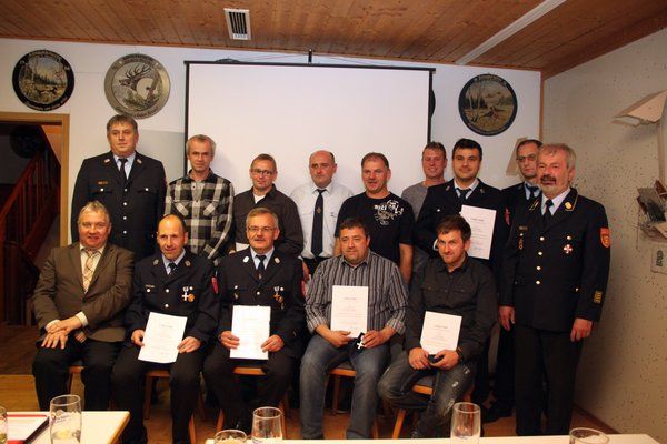 Für 25-jährige Vereinszugehörigkeit wurden geehrt: Peter Senft, Markus Vogl, Stephan Braun, Thomas Lautenschlager, Markus Richthammer, Thomas Senft, Wolfgang Söllner, und Jürgen Übler. Für 40-jährige Treue zum Feuerwehrverein Wolfsbach gingen Urkunden an Karl Preußl, Josef Singer sen. sowie Bernhard und Franz Ehebauer. 50 Jahre halten Leonhard Holler und Herbert Waligora sen. dem Feuerwehrverein Wolfsbach schon die Treue. Gar 60 Jahre Werner Marschall und Hermann Reinwald.
