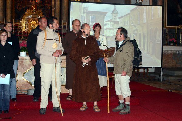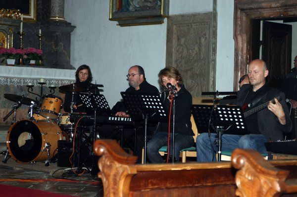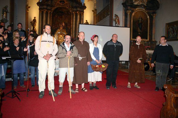Das Musical über den Jakobsweg „Der Weg nach Santiago“ wurde in der Kirche St. Jakobus, einer Kirche auf dem Jakobsweg, dank ihrer unvergleichlichen Akustik und der hervorragenden musikalischen Leistung des Chores „Martinsgänse“ und der Band „creazione unisono“ unter der Leitung und dem Arrangement von Bernhard Müllers, sowie der szenischen Darsteller Markus Schmid (Jakob Meyer), Franz Moosburger (Wanderer –Pilger), Marianne Meissner (Bäuerin), Bernhard Kramer (Mönch), Peter Kehl (Abt), Erich Lang (Musiker) und Jutta Lacher (Gärtnerin) zu einem musikalischen, optischen und spirituellen Erlebnis, das sicher noch lange nachwirken wird. Eindrucksvolle Aquarellbilder machten den musikalischen Pilgerweg zu einem farbigen Ereignis. Die tiefgreifenden Texte nahmen die Zuhörer mit auf den Weg des Fragens und Glaubens. Beim Schlussgesang „Überall ist Santiago“ sangen alle mit: „Überall ist Santiago, kann an jeder Stelle sein. Gottes Geist kennt keine Grenzen, weht mit Macht ins Herz hinein. Ganz egal, wo du auch herkommst, Santiago ist nicht weit. Geh den Weg der großen Suche, geh ihn mit Gelassenheit. Öffne weit das Tor der Seele, Gottes Geist gelangt hinein. Sprich mit Menschen, die dir helfen. Dann kannst du bald fündig sein. Auf dem Weg nach Santiago machst du immer wieder Halt. Ruh dich aus, wenn dir das gut tut. Du schaffst gar nichts mit Gewalt. Wunderschön klingt Santiago, beinah wie ein Zauberwort. Seine Glut für dich entfachen, das kannst du an jedem Ort.“