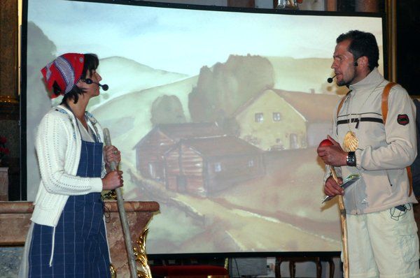 Erzählt wurde die Geschichte des Jakob Mayer (Markus Schmid), der sein Glück an der Börse oder im Spielcasino sucht. Als seine Mutter im Sterben liegt, verspricht er ihr widerwillig, den langen Jakobsweg nach Santiago de Compostela in Spanien, zum Grab des hl. Apostels Jako-bus zu gehen. Sein Gewissen treibt ihn dazu, das Versprechen zu erfüllen. Indem er unterwegs auf seinem Pilgerweg Leute trifft und von ihnen lernt, wie immer wieder einem Pilger (Franz Moosburger), einer Bäuerin (Marianne Meissner), einem Mönch (Bernhard Kramer) und dem Abt (Peter Kehl), einem Musiker (Erich Lang) sowie einer Gärtnerin (Jutta Lacher), gewinnt er wider Erwarten tiefe existentielle und spirituelle Erkenntnisse. Am Zielort angelangt, spürt Jakob, dass er sein Leben ändern muss. Schritt für Schritt kommt er zur Erkenntnis: „Santiago ist überlall.“ „Gott bringt Schwingung in mein Leben. Ich spüre seine Melodie, Gott kann Ton und Rhythmus geben; eine starke Harmonie. „Wenn wir Gott anbeten, sind wir mitten in der Welt.“ „Gottes Segen für die Welt, ist die Hand, die alles hält.“ „Das ende der Welt ist nicht bekannt. Das Ede der Welt liegt in Gottes Hand.“ „Jesus ist der Weg. Jesus ist der Pfad. Leben ist weit mehr als Ehre, Macht und Geld. Hoffnung findet der, der sich an Jesus hält.“ Jakob Meyer geht in die Kathedrale und versucht zu beten. „Ich habe gebetet, und es hat mir gut getan“, erkennt er. „Meine Aktien steigen, diesmal aber spirituell!“ Und: „Menschen bauen Brücken, wie es Gott gefällt. Freundschaft, sie kann glücken in der einen Welt. Trennung kann man ändern, wie es Gott gefällt, in so vielen Ländern, in der einen Welt. Krach und Lärm verhallen, wie es Gott gefällt. Grenzen werden fallen in der einen Welt. Fremde werden Freunde, wie es Gott gefällt; friedliche Gemeinde in der einen Welt. Hoffnung wird es geben, wie es Gott gefällt, für das ganze Leben in der einen Welt.“