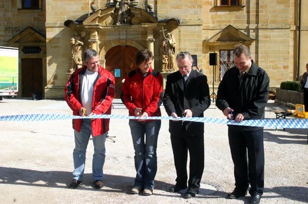 Nach dem Durchschneiden des weißblauen Bandes, der offiziellen Eröffnung des permanenten „Kapellenweges“, machte sich eine Gruppe der Wanderfreunde Ensdorf, der Wanderfreunde aus Teunz und aus Schwandorf mit dem DVV-Bezirksvorsitzenden und der Vorsitzenden der Wanderfreunde Ensdorf auf, den „Kapellenweg“ zu erwandern.