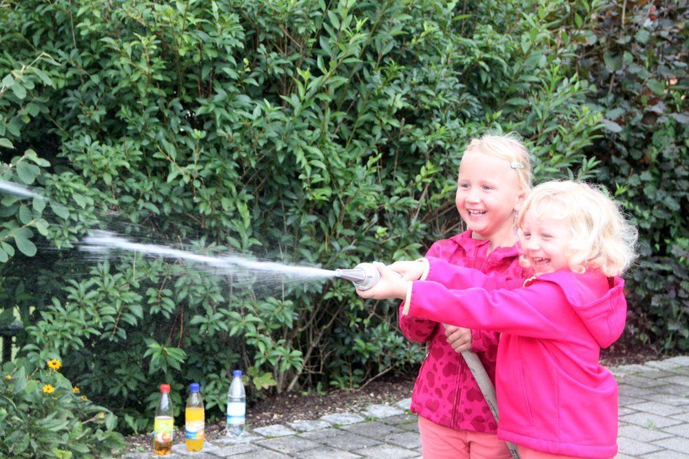 Groß war der Spaß beim Zielspritzen auf Flaschen mit der Kübelspritze, wobei Louis Übler und Elias Schönfelder assistierten. Beim Zielwerfen mit Rettungsleinen. Viel Spaß hatten die Kids auch beim Spritzen – unter Aufsicht der Jugendfeuerwehrler Sophie Graf und Alexandra Schindler natürlich – mit dem C-Strahlrohr.