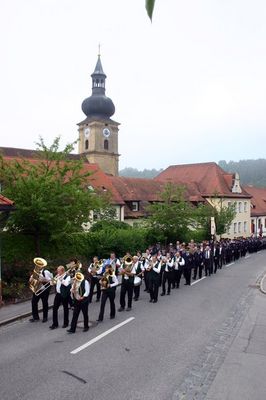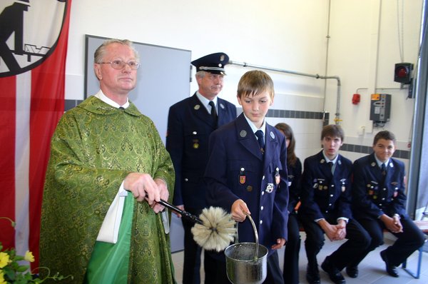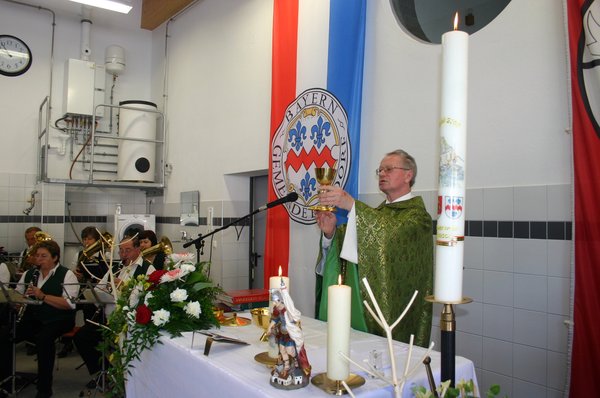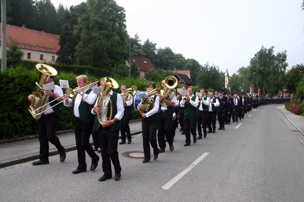Viel Prominenz, viele Feuerwehrabordnungen aus dem südlichen Landkreis und alle Vereine der Gemeinde folgten in einem Festzug den schmissigen Klängen der Blaskapelle Ensdorf unter Leitung von Hubert Haller vom Rathaus zum neuen Feuerwehrgerätehaus. Dort zelebrierte Pfarrer Pater Hermann Sturm den Festgottesdienst und segnete anschließend das Bauwerk.