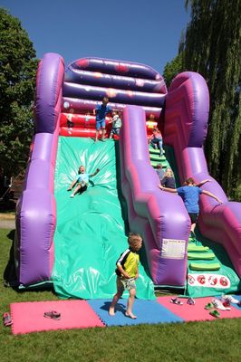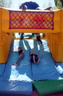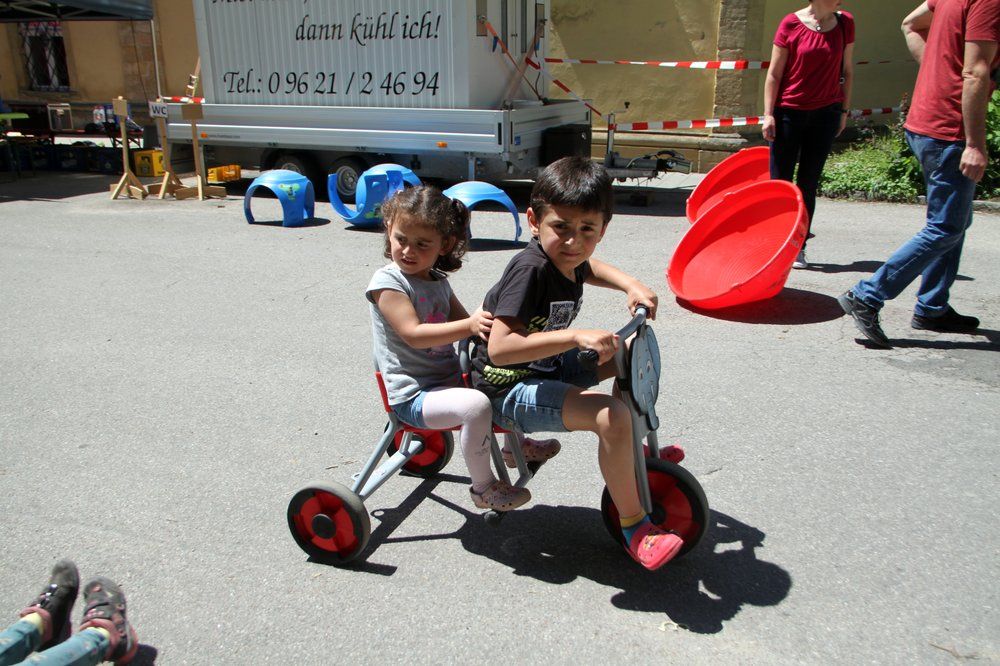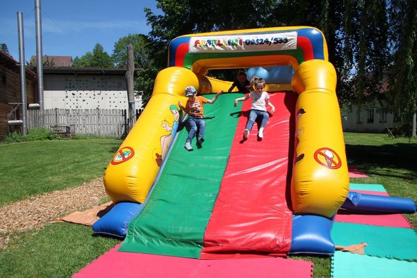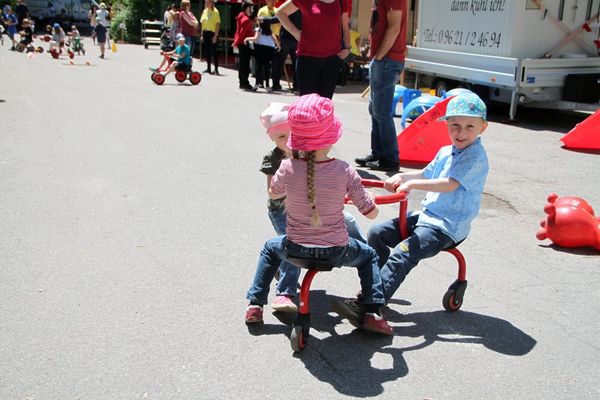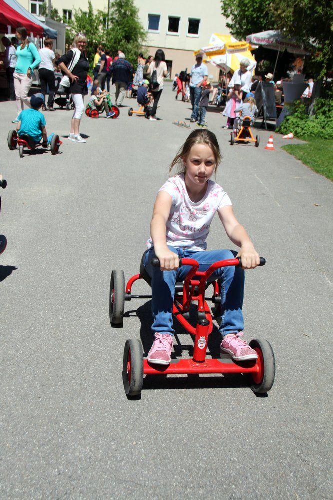 Verschiedene große und kleinere Hüpf- und Rutschburgen zum Klettern, Rutschen und Springen waren dicht belagert. Der Nachfrage nach Kinderschminken und Glitzer-Tatoos konnten Alexandra und Julia kaum nachkommen. Buben und Mädchen waren mit Begeisterung beim Menschenkickern dabei. Im Klanghaus probierten Kinder und Eltern verschiedene Klanginstrumente aus. Auf der riesigen Spielstraße flitzten die Kids auf den unterschiedlichsten und originellen Fahrzeugen oder konnten sich im Stelzengehen üben.