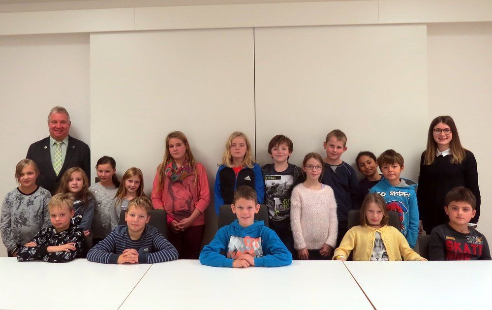 Zuerst wurden alle im Sitzungssaal empfangen. Von beiden Seiten wurden Fragen gestellt. In zwei Gruppen erkundeten die Kinder dann Einwohnermeldeamt, Standesamt, Personalwesen, Kassee und Bauamt.