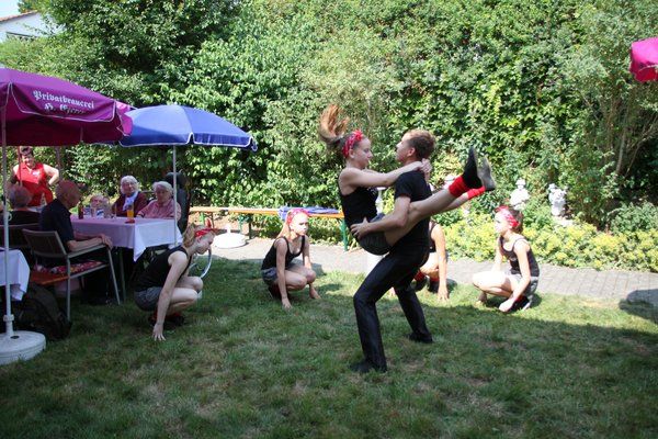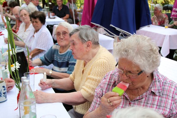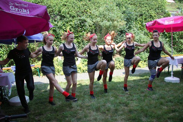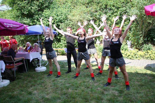 Den ganzen Nachmittag spielte der Rieger Hans in seiner gewohnt zünftigen Art u. a. „I bin fidel …“, „Mir san vom Wold dahoam“, „Es war im Böhmerwald“, „Lass die Sonne in dein Herz“, „Du schwarzer Zigeuner“, „Hallo Marilou“, „Rote Rosen, rote Lippen, roter Wein“ und fleißig weiter alte Schlager und Stimmungsmusik auf seinem Akkordeon. Mit den Senioren feierten ihre Kinder, zum Teil auch mit Enkeln und Urenkeln fröhlich das Sommerfest. Viel Applaus erhielten die „Ladies Formation“ und Einzeltänzer der Jugendgruppe des Rock’n-Roll-Club „Quick Feet“.