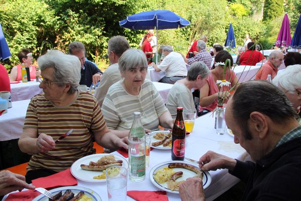 Heimleiterin Lydia Brandl begrüßte: „Heuer meint es der Wettergott mehr als gut mit uns!“ Ihr ganzes Team mit Sozialbetreuerin Elke Augsberger hatten das Fest vorbildlich organisiert. Gäste und Heimbewohner wurden liebevoll betreut. Zuerst gab es Kaffee, verschiedene Obstkuchen und kühle Getränke. „Eis am Stil“ kühlte bei den hochsommerlichen Temperaturen. Zum Abendessen servierten „Chefkoch Mario Hellern“ und Hausmeister Georg Faulhaber gegrillte Bratwürstl und Steaks mit würzigem Kartoffelsalat, knackigen Salaten und deftigem Sauerkraut.