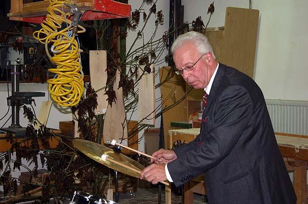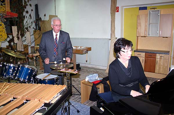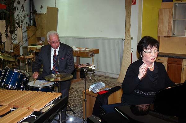 Der Schreinermeister begrüßte in seiner Werkstatt, umgeben von Maschinen, Werkstücken und natürlich viel Holz, zur Musikpremiere in der Schreinerwerkstatt „zwei Meister ihres Faches“: die bekannte Konzertpianistin Ludmila Portnova und ihr Ehemann und nicht minder bekannten Schlagzeuger und Percussionisten Vadim Vasilkov. „Beim Holz und in der Musik muss die Harmonie stimmen“, so Hubert Fischer. Vadim Vasilkov erinnerte an die lange Freundschaft, die ihn und seine Frau Ludmila mit der Familie Fischer verbindet, und daran, dass der Schreinermeister für ihn schon ein Xylophon gebaut hat. Darauf spielte er dann auch einen Tanz des armenischen Komponisten Aram Chachaturian. Als erstes brachten die beiden Musiker, die seit über zehn Jahren in Bayern leben, den Walzer „Bayerische Geschichten“ von Willy Richards zu Gehör. Überhaupt spielten sie für die zahlreich erschienenen Besucher vor allem Unterhaltungsmusik aus allen Erdteilen, boten Musik vom Feinsten. Da erklangen z. B. temperamentvoll spanische Tänze oder das südamerikanische „La Cucaracha“, ein Blues aus Gershwins „Ein Amerikaner in Paris“ oder Melodien aus „Karneval der Tiere“ von Camille Saint-Saens. Darüber hinaus begeisterten Melodien von Strauß und Schostakowitsch. Pop-Musik, Percussion, Tango und Rumba rissen das Publikum zu Beifallsstürmen hin.