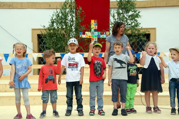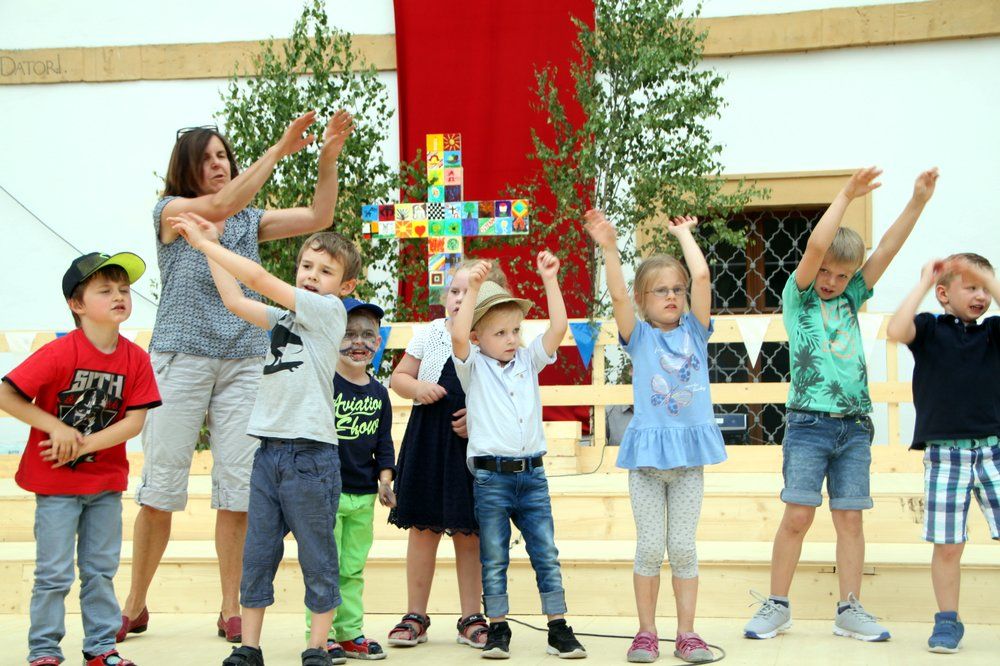 Zur Freude aller – nicht der Eltern und Großeltern sangen die Kinder des Kindergarten St. Jakob „Wir feiern heut ein Fest“ und „Sieh mal her, wie ich tanzen kann! Linkes Bein zurück, rechtes Bein nach vorn!“ Die Wandermusikanten Bose auf seiner Quetschn und der Fonse auf seiner Klarinette – verstärkt durch den zehnjährigen Michael Drexler auf dem Akkordeon sorgten den ganzen Nachmittag für tolle Stimmung mit uriger Musik und Gesang.