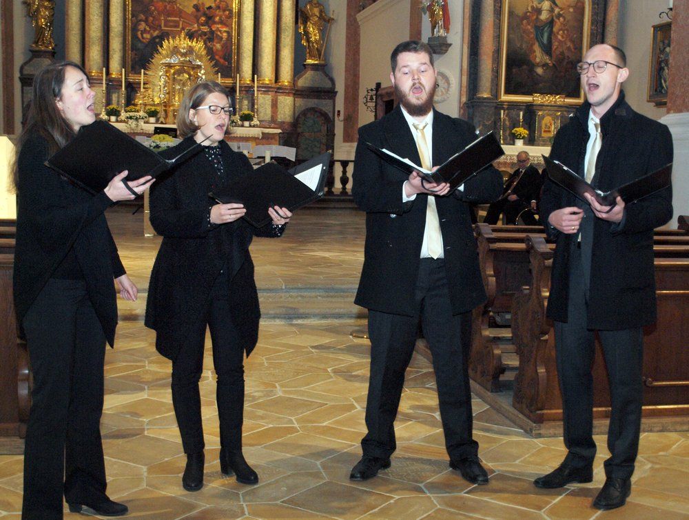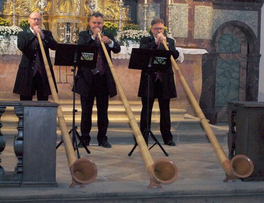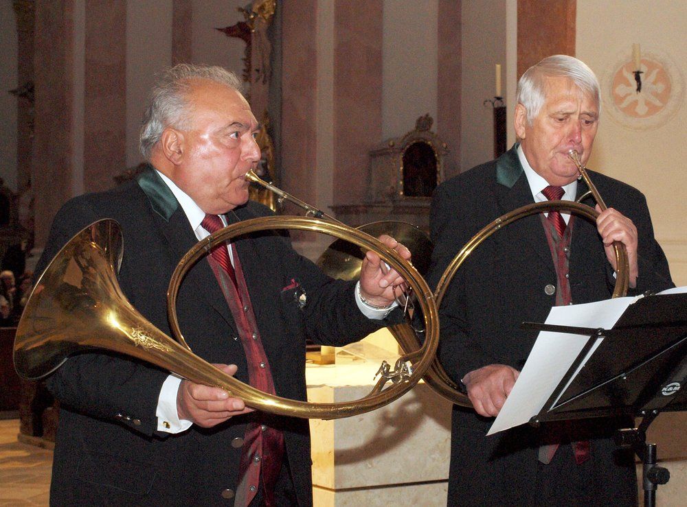 Barocke Jagdmusik, wie sie früher an den Höfen in Paris, Wien oder München geblasen wurde, ließen die Oberpfälzer Parforcehornbläser unter Leitung von Hubert Bäuml, lebendig werden und spannten dann den Bogen über die romantische Musik des 19. Jahrhunderts bis in die aktuelle Jagdmusik. Den vokalen Teil des Konzerts bestritt das Vokalensemble „sine nomine“ unter Leitung von Simon Pawellek – besetzt mit Sopran, Alt, Tenor und Bass –, die ihr Repertoire noch weiter spannten mit geistlicher Musik von der Renaissance bis zu modernen Stücken der Gegenwart. Diese beiden völlig verschiedenen Musikstile bildeten die Spannung dieses Konzerts. Auf der einen Seite die wohltemperierte Vokalmusik aus fünf Jahrhunderten, vorgetragen von hervorragend geschulten reinen Stimmen in wunderbarer Harmonie. Aus der anderen Seite die konzertante Jagdmusik, exzellent geblasen auf den Parforcehörnern mit ihrem raueren Ton, einem schwierig zu blasenden Naturhorn ohne Ventile, auf der alle Töne allein mit Lippenansatz geformt werden müssen. Die Parforcehornbläser begrüßten das Publikum fulminant mit dem „Marche Sonelle“, dem festlichen Marsch von Gaston Chalmel, einem zeitgenössischen französischen Komponisten. Weit zurück in das 16. Jahrhundert sprang das Vokalensemble mit dem „Exultate Justi“ des italienischen Komponisten Ludovico Grossi da Viadana, dem das Lied „If ye love me“ von Thomas Tallis, einem englischen Komponisten geistlicher Musik folgte. Unterbrochen wurde diese Abfolge des durch Dr. Reinhard Proske moderierten Konzerts, von den auf Alphörnern vorgetragenen Liedern „Maria zu lieben“ sowie der Schweizer Weise „Abendsegen“. Danach wieder die Parforcehörner mit Stücken französischer Komponisten, denen historische Ereignisse als Vorlage dienten wie „La Mort de Roland“, in dem die Sage vom Tod von Roland, dem Paladin Karls des Großen musikalisch verarbeitet wird. Das letzte vom Vokalensemble vorgetragene Stück „La nuit“ stammte von Philippe Rameau aus dem 18. Jahrhundert. Gerade bei diesem Komponisten trafen sich beide Musikstile – die des harmonischen Gesangs und des rauen Parforcehorntons – denn Rameau hatte nicht nur Vokalmusik komponiert, sondern auch für den Effekt seiner Musik im Orchester zum ersten Mal die damals neuen Parforcehörner eingesetzt. Mit der Fantasie „Derniers Adieux“ (letzte Adieus) beendeten die Oberpfälzer Parforcehornbläser ein eindrucksvolles Konzert, das den Zuhörern noch lange in Erinnerung bleiben wird, Das Publikum bedankte sich mit „standing ovations“, sodass die Oberpfälzer Parforcehornbläser und das Vokalensemble nicht um Zugaben herumkam. Die Parforcehornbläser zeigten mit der „Feuerwerksmusik“ von Georg Friedrich Händel, dass das Naturhorn nicht nur für Jagdmusik, sondern bis zur Erfindung der Ventile Anfang des 19. Jahrhunderts auch in der Kunstmusik seine Verwendung gefunden hatte. Das Vokalensemble beschloss diesen wunderbaren Konzertabend mit „Guten Abend, gute Nacht“.
