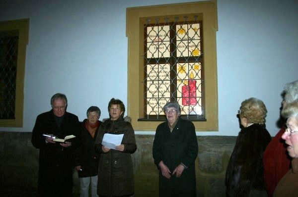 „Wir sagen euch an den lieben Advent“ wurde gesungen. Frauenbundsvorsitzende Erika Fröhlich erinnerte an die „gute alte Zeit“, in der man sich mehr Ruhe und Stille gegönnt hat, die Hast und Hetze des heutigen Lebens noch nicht kannte. „Daran fehlt es uns heute weithin: an der Ruhe und Stille. Wer es nicht fertig bringt, einmal alles liegen und stehen zu lassen, ist Sklave des Betriebes geworden“, erklärte sie. Stellvertretende Vorsitzende Kathi Hafenbradl ergänzte: „Damit Gott auch zu uns spricht, dazu brauchen wir mehr Ruhe und Stille. Er gönnt sie uns. Seinem Widersacher liegt daran, uns ständig in Trab zu halten. Nur wenn wir zur Ruhe und Stille kommen, begegnen wir Gott.“