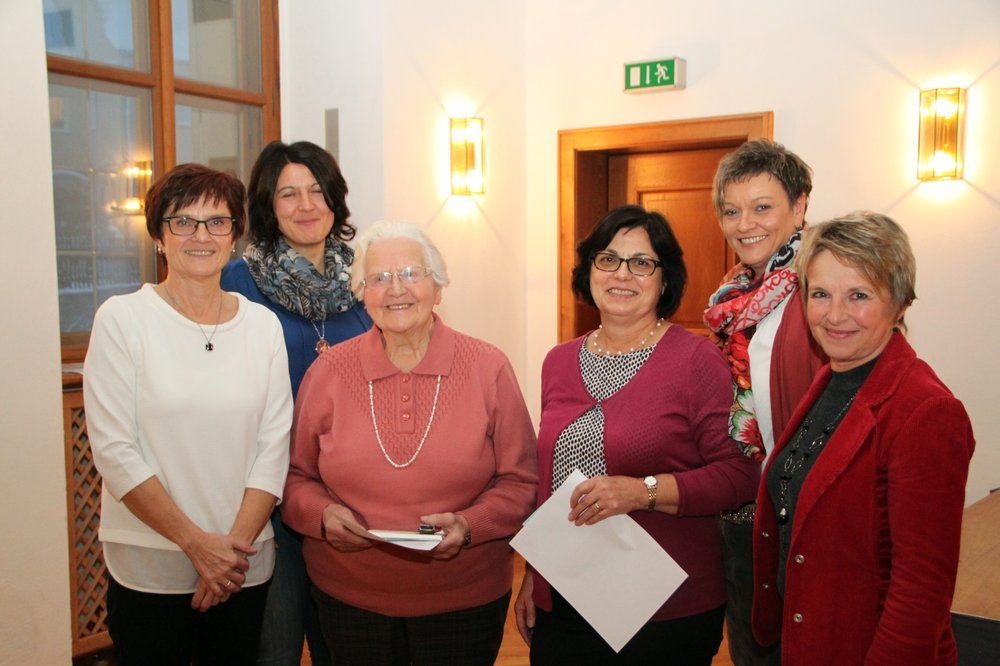 Nach einer Kaffeepause stellte Luzia Büchli „Solwodi Regensburg“ vor, eine Beratungsstelle für ausländische Frauen in Not vor. Ihr wurde vom Katholischen Frauenbund Ensdorf eine Spende von 500 Euro überreicht. „Wir freuen uns, auch in diesem Jahr wieder neue Mitglieder aufnehmen zu dürfen“, erklärte Monika Auer vom Leiterteam. „Durch euch wird unsere Gemeinschaft reicher und stärker, Darüber freuen wir uns sehr.“ Den fünf Neumitgliedern Dagmar Jezirowski, Therese Beer, Lisa Übler, Gabi Trager und Anneliese Ehebauer wurden das Mitgliedszeichen, der Mitgliedsausweis und das Gebet des Kath. Frauenbundes überreicht. „Wir wünschen euch, dass ihr im Frauenbund vieles findet, was ihr genießen könnt, und dass die Gemeinschaft des Zweigvereins Ensdorf euer Leben immer wieder versüßen kann,“ Symbolisch gab es dafür schon mal eine Tafel Schokolade.