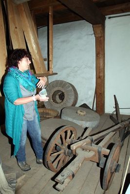 Zwischen den riesigen Mühlsteinen – dem feststehenden Mühlstein und dem darüber befindlichen „Läufer“ - wird Getreide gemahlen. Zuerst zu Schrot, dann zu Kleie und groben und feinen Grieß und erst dann kommt das feine weiße Mehl heraus. So auch in der „Weißmühle“ in der Außenstelle im Ostbayerischen Bergbau- und Industriemuseum in Theuern. „Im späten Mittelalter wurden da sogar Maikäfer zu Tierfutter gemahlen“, berichtete die Museumspädagogin den überraschend vielen interessierten Besuchern. „Müller mussten auch Asyl gewähren, obwohl sie in den Dörfern ebenso wie Bader und Totengräber nicht gern gesehen wurden und mussten auch die Galgen errichten, hatten sie neben der Müllerei auch Zimmerer und Gesteinsbauer gelernt. „Sie waren als a bisserl unehrlich verschriehen, weil die Bauern für einen Zentner Getreide keinen Zentner Mehl bekamen. Auch war ihr Beruf recht einträglich, bekamen sie doch rund die Hälfte des Getreides als Lohn für ihre harte Arbeit. Sie passten ihren Arbeitsrhythmus der Natur an.“ Neben genauen Erläuterungen von Mühle und die Arbeit eines Müllers, unterstützt von ihrem „Assistenten“, dem neunjährigen Alexander Aures aus Sulzbach-Rosenberg, wusste Erika Hassler auch über viele Anekdoten um das Müllerwesen zu berichten.