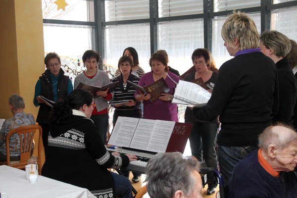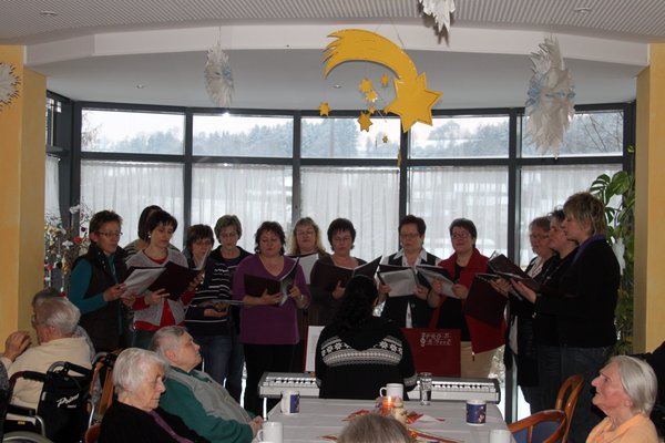 „Ihr habt uns eine sehr schöne Stunde mit viel Freude bereitet“, lobte Heimleiterin Lydia Brandl den „Spitzen-Chor“ aus Hausen und lud zu Punsch, Plätzchen und Lebkuchen ein. Gerne kommt dieser auch nächstes Jahr wieder ins BRK-Seniorenheim nach Ensdorf.