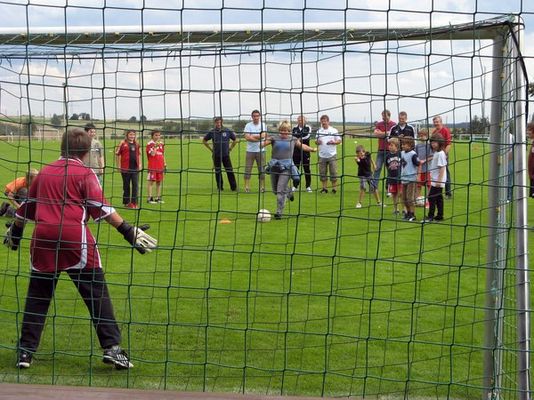 Die Jungs und Mädels der E-Jugend forderten ihre Eltern zum Elfmeterschießen heraus. Zuerst durften die Eltern schießen, anschließend traten alle Kids gegen sie zum Schuss an. Einer der Trainer, Markus Bauer, kassierte die meisten Gegentreffer (9) und durfte hierfür der Mannschaft ein Eis ausgeben.