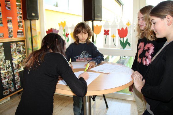 Anschließend stellte Schulleiterin Helga Gradl Grundzüge der der Satzung der Schülergenossenschaft „Der grüne Daumen“ der Mittelschule Ensdorf vor. Diese wurde von den Gründungsmitgliedern einstimmig angenommen und durch ihre Unterschriften bestätigt.