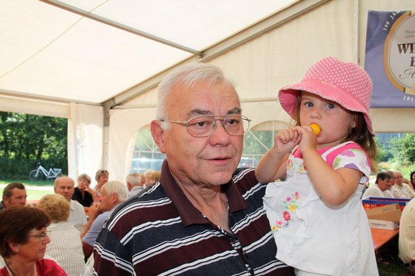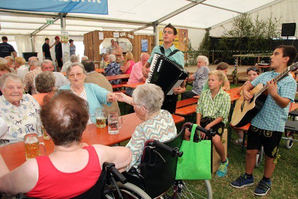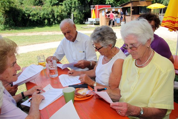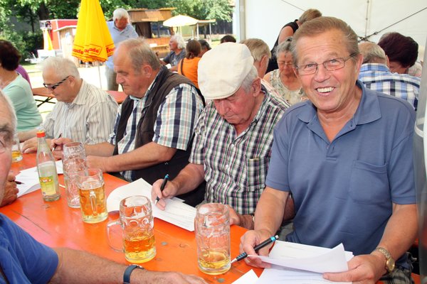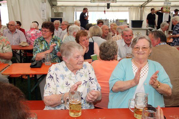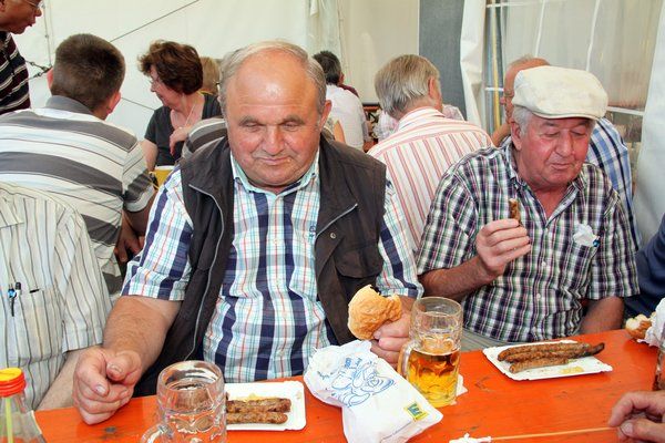 Der Bürgermeister freute sich, dass trotz der Hitze so viele Seniorenbürger aus allen Gemeindeteilen der Einladung gefolgt sind, wünschte „viel Spaß, Freude, Geselligkeit und frohes Beisammensein bei Ratsch, Tratsch und Unterhaltung Er dankte der FFW, der Kirwagemeinschaft, der Raiffeisenbank Unteres Vilstal, dem Pfarrgemeinderat und dem Heimat- und Kulturverein, der das Seniorenquiz ausgearbeitet und dafür viele Preise gesammelt hatte, und mit ihren Mannschaften den Seniorennachmittag ermöglicht haben. Die Gemeinde spendierte jedem der Senioren eine kostlose Brotzeit und ein Getränk. Da schmeckten Freibier, Bratwürstln und Käse natürlich besonders gut! Der Pfarrgemeinderat bot zusätzlich kostenlos Kaffee an. Pfarrer Pater Herman Sturm begrüßte alle, „die aus den eigenen vier Wänden zu dem geselligen Nachmittag bei Essen. Trinken und guten Gesprächen gekommen waren“.