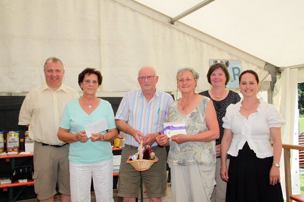 Interessant für die älteren Bürger war der zum neunten Mal vom Heimat- und Kulturverein ausgearbeitete Heimatquiz mit zehn Fragen. Da rauchten die Köpfe! Auch wurde - wie schon zur Schulzeit? – mal „gespickt“ und abgeschrieben. Es galt ja schließlich u. a. zu wissen, welcher Heilige sowohl zum Kloster Ensdorf als auch zum Bistum Bamberg einen bedeutenden Bezug hat (Bischof Otto), was seit einigen Jahren an einem bestimmten Datum viele Personen gleichen Vornamens feiern (Josefitag), wie viele Palmbüschel der Katholische Frauenbund gebastelt hat (über 250), was die Gemeinde allen Neugeborenen neben Begrüßungsgeld u.a schenkt (Rauchmelder), wie das Tor in Hirschwald heißt, das zur Zeit renoviert wird (Ensdorfer Tor), dass die Gemeinde Ensdorf im Vergleich zum Vorjahr eine leichte Zunahme der Bevölkerung aufweist, dass die Salesianer heuer den 200. Geburtstag ihres Ordensgründers Don Bosco feiern, dass der Stephansturm als markantes Ensdorfer Gebäude jetzt Regenrinnen hat, heuer das Gemeindefest nicht stattfindet und die Namenstag der Kirchenpatrone hl. Magdalena (22. Juli) und hl. Jakobus der Ältere (25. Juli) sind. Viele Senioren hatten alle zehn Fragen richtig beantwortet. Als Glücksfee fungierte die stellvertretende Vorsitzende des Heimat- und Kulturverein, Elke Bauer-Hammer. Bürgermeister Markus Dollacker verkündete dann die Preisträger. Den ersten Preis erhielt Cäcilie Wein, den zweiten Johann Rost und den dritten Sighild Müller.