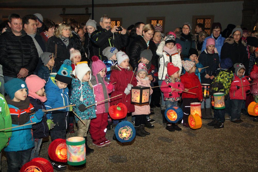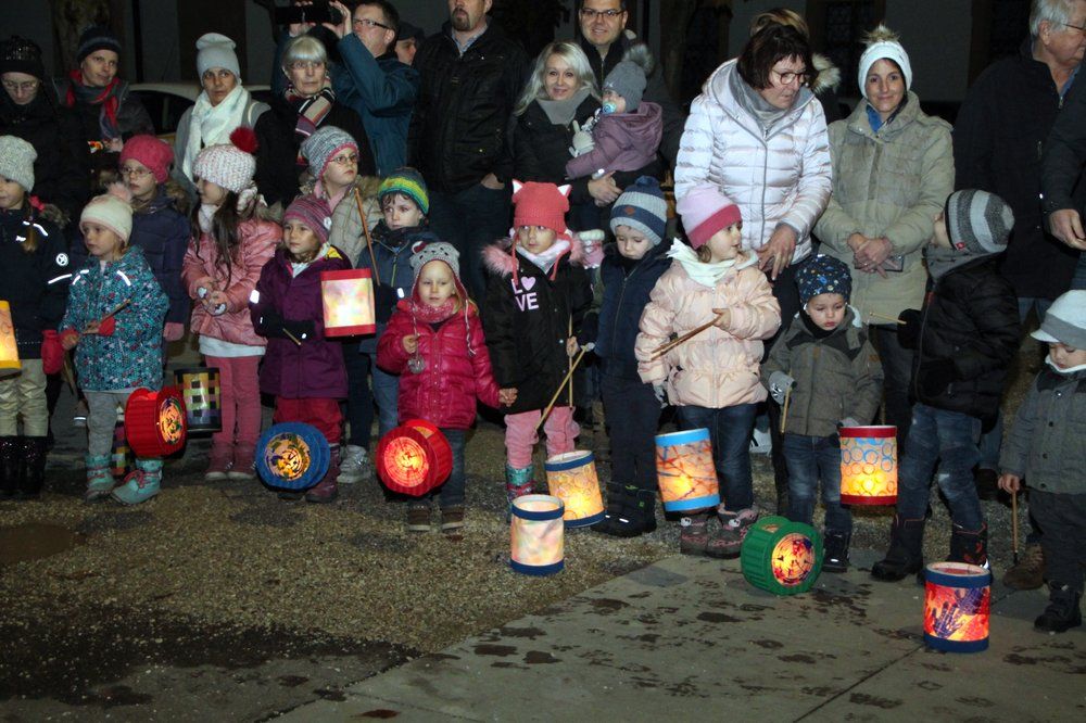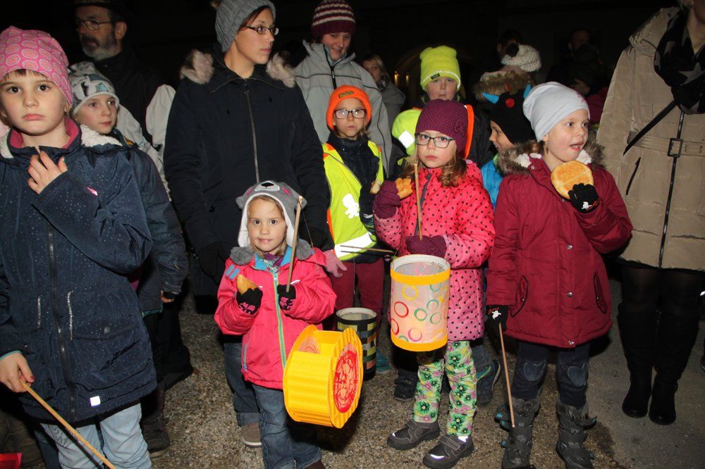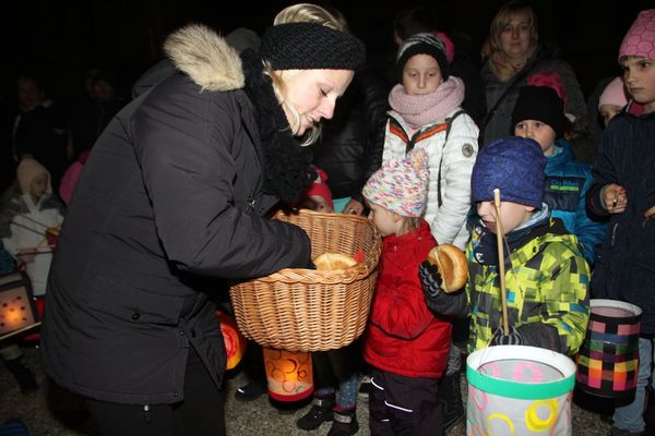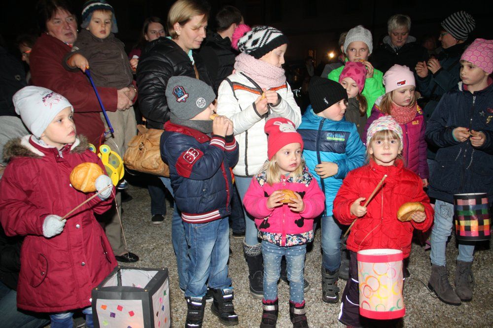 Eingangs wurden die Lieder „Kommt, wir woll’n Laterne laufen“ und „St. Martin lasst uns feiern“ in der Pfarrkirche St. Jakobus gesungen. Dann begrüßte Pfarrer Sturm die vielen Kinder und Erwachsenen und betonte dass die soziale Haltung des Hl. Martin für uns alle gelten solle, auch für die Erwachsenen. „Brot und Leben teilen“ gab er als Motto der Martinsfeier aus.