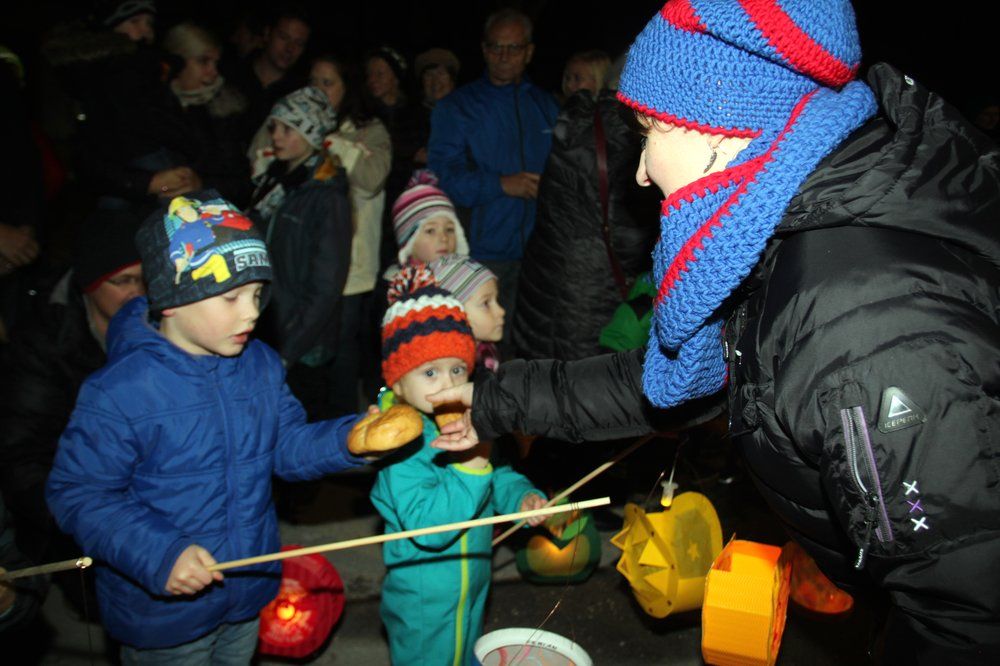 Mit den Martinsbroten und vom Kindergartenelternbeirat selbstgebackenen Lebkuchen sowie Wiener Würstchen mit Brezen und Kinderpunsch konnten sich alle für den Heimweg stärken.