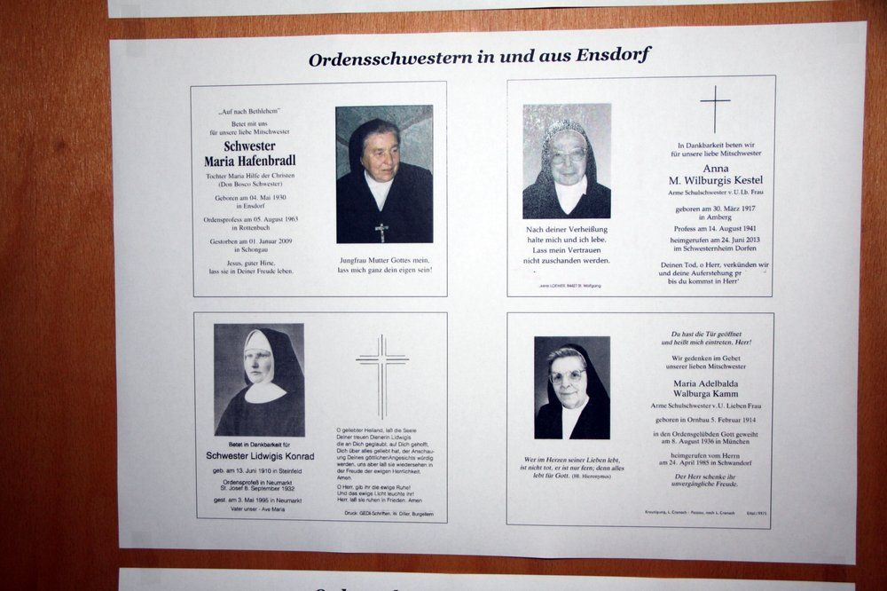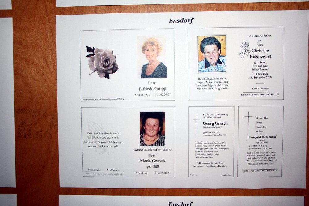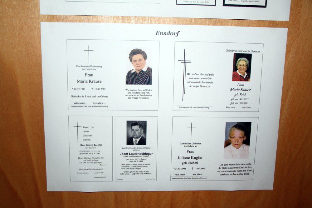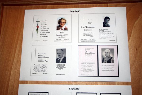 Wenn noch jemand alte Sterbebilder aus Ensdorf und Umgebung zu Hause hat, wäre Hans Weiß für eine kurzzeitige Überlassung derselben zur Anfertigung von Kopien und Erstellung eines Archives sehr dankbar. Die Ausstellung mit vielen Sterbebildern aus der Gemeinde Ensdorf ist noch bis einschließlich Sonntag, 13. November im Kreuzgang des Klosters täglich zwischen 9 und 18 Uhr zu sehen.