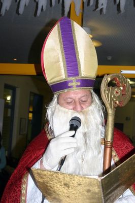 Zuvor aber las der Heilige den Bewohnern aus seinem goldenen Buch in von Sozialbetreuerin Elke Augsberger verfassten Versen die „Leviten“. Für Tadel gab es kaum einen Anlass, denn „nur Brave gehen hier ein und aus!“ Der Heilige sprach viel Lob aus, ließ das Jahr im Seniorenheim Ensdorf mit seinen vielen Aktivitäten Revue passieren: „Suppe kochen, Plätzchen backen, alles will die Kochgruppe machen. Sogar die Leut in Regensburg wurden aufmerksam, so dass gleich das Fernsehn kam. Allerheiligenspitzel wurden zubereitet, die allerhöchste Freud verbreitet.“, jeden Dienstag singen, einmal im Monat am Mittwoch mit geladener Öffentlichkeit, lustiges Gewichte stemmen bei der Gymnastik, den monatlichen Dämmerschoppen, das Basteln von Hausdekorationen für jede Jahreszeit, die beliebten Lesestunden, die erste Heimzeitung, Bockbier- und Oktoberfest, Johannisfeier, „Einkaufsreisen“ zum Netto nach Rieden, Ausflüge zur Kirwa in Ensdorf oder dem Bergfest nach Amberg. Nikolaus erinnerte aber auch an manche lustige Begebenheit. So etwa, dass „Chefin“ Lydia Brandl den Christbaum wieder rausgeschmissen hat. Knecht Rupprecht musste so erst gar nicht zur Rute greifen. Nur vereinzelt streichelte er damit. Der Heilige Nikolaus lobte viele fleißige Heimbewohner und das Personal für Hilfen, Betragen, Mühen und Plagen.