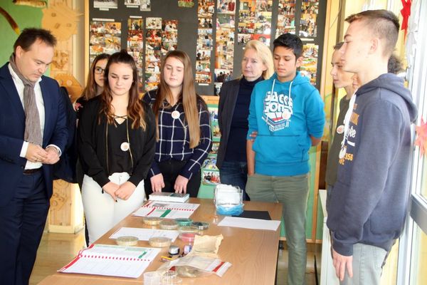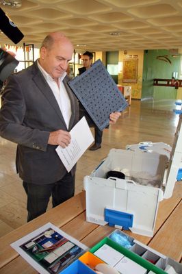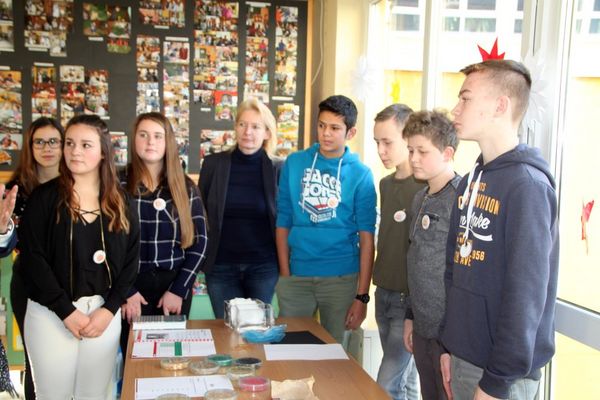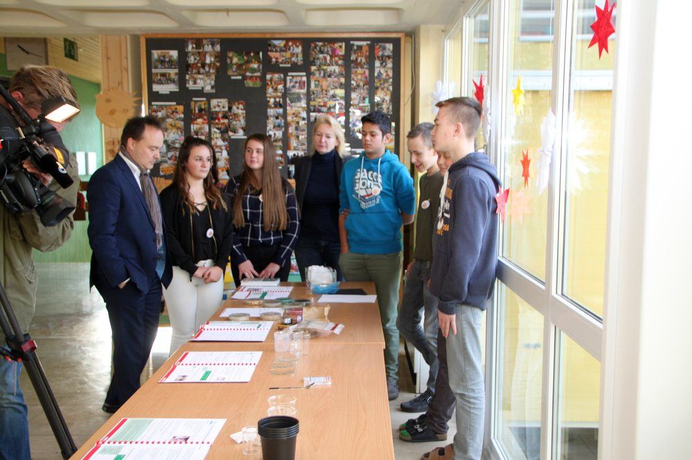 „Vor eineinhalb Jahren kam Herr Grauvogl in unsere Schule und unterbreitete das Angebot, in einem gemeinsamen Projekt eine Seminarreihe für Schulen zum Thema ‚Woher kommen unsere Lebensmittel?’ durchzuführen. Hierbei sollten ‚Koffer’ mit Versuchsbausteinen zu den Themen Boden, Wasser und Luft entstehen“, erinnert Rektorin Helga Gradl. „Wir bildeten mit Sabine Stopfer-Birner, Birgit Metz und mir ein Lehrerteam und unterbreiteten den Schülern der damaligen sechsten Klasse den Vorschlag, dieses Projekt durchzuführen. Begeistert stimmten diese zu. In Arbeitsgruppen setzten sich die Schüler zusammen und stöberten in Schulbüchern und im Internet nach geeigneten Versuchen zum Thema Boden. Diese sollten zielgerichtet und kompetenzorientiert, aber mit einfachen Mitteln durchzuführen sein.“