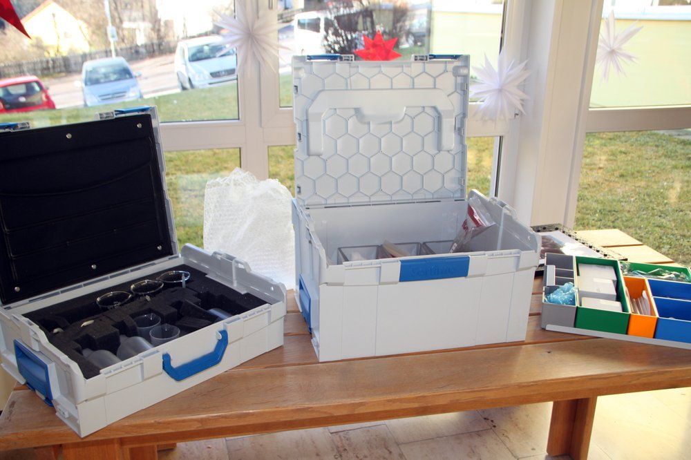 In einem Projektmeeting wurde gemeinsam eine Auswahl von sechs Versuchen getroffen: „Was brauchen Pflanzen zum Keimen? Wie ist mein Boden aufgebaut? Wie sauer ist mein Boden? Wie viel Kalk enthält mein Boden? Wie viel Wasser kann mein Boden aufnehmen? Wir unterscheiden Bodenarten. Anschließend erarbeiteten die einzelnen Arbeitsgruppen den Ablauf der Versuche, führten diese durch, bewerteten sie, stellten Bestelllisten zusammen und fixierten die Versuche. Nach Rücksprache mit Herrn Anton Grauvogl, Ausbildungsleiter der Firma Horsch, konnte es dann an das Bestücken der Versuchskoffer gehen. Zwischenzeitlich erhielten Lehrerinnen, Schülerinnen und Schüler eine Werksführung der Firma Horsch.