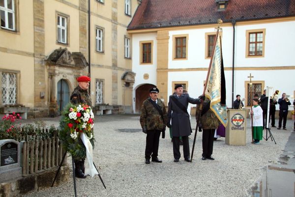 „Wir gedenken heute am Volkstrauertag der Opfer der unsäglichen Weltkriege und der vielen anderen Kriege, der vielen Toten von Soldaten und aus der Zivilbevölkerung. Wir beschwören damit den Frieden bei allen Völkern und Herrschern. Doch wir erleben auch heute Gewalt und Unfrieden in brutalster menschenverabscheuender Weise. Es geht, wie wir in den Zeitungen und anderen Medien erfahren, bei den ‚kleinen Auseinandersetzungen’ an, die in Brutalität bis hin zu Mord gehen, und so ihre Kreise unter den Völkern zieht“, erklärte Pfarrer Pater Hermann Sturm. „Wir werden Frieden in unserer Welt nicht finden, wenn wir nicht kapieren, dass Friede nicht irgendwo, sondern bei uns anfängt im tolerierenden Miteinander und Füreinander. Wo wir Gott ausklammern, wird weder Gerechtigkeit, noch Frieden, vielmehr Chaos, Gewalt, Terror und Krieg herrschen. Wo seine Gebote ausgeschaltet werden, wird es keinen Frieden geben. Christus ist unser Friede, wie Paulus sagt. Wir als Christen sollen mitbauen an einem Reich der Gerechtigkeit, der Liebe und des Friedens“, so Pfarrer Sturm..