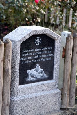 Dieses Jahr wurde als Zeichen der Erinnerung ein kleiner Gedenkstein am Kriegerdenkmal in Ensdorf gesegnet, der auf Initiative von Erich Brem vom Krieger- und Reservistenverein aufgestellt wurde. Künstlerisch gestaltet wurde er kostenlos vom Ensdorfer Steinmetz Georg Kirchberger. Für alle soll der im Stein eingemeißelte Aufrucf Erinnerung und des Gedenkens sein: „Stehest Du an dieser Stätte hier, so schenk ein Vaterunser mir. Denk an mein Grab im Feindesland, im stillen Wald am Wegesrand!“