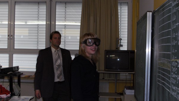 Die Jahrgangsstufen 8 und 9 hingegen holten sich bei Apotheker Kruppa wichtige Tipps zum Thema „Pickel - (k)ein Problem“ ab und Florian Naumann von der DAK Regensburg informierte eindringlich zur Wirkung von Alkohol und Drogen im Straßenverkehr – u. a. wurde den Schülern die Beeinträchtigung durch Versuche mit einer „Rauschbrille“ am eigenen Leibe erfahrbar gemacht.