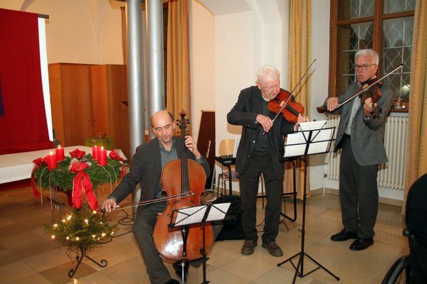 Der Vorsitzende blickte auf das Sängerjahr zurück und erinnerte an diverse Auftritte, die „sehr gut angenommen wurden“, vor allem das Adventssingen am 2. Advent in Ensdorf und diversen anderen Auftritten zusammen mit den Sängern des Sängerbundes 1880 Amberg, mit dem man eine Chorgemeinschaft bildet. Viktor Hammer (Cello), Gerd Tschaffon (Bratsche und am Keyboard) sowie Helmut Walther (Geige) leiteten mit einer Pastorella um 1800, „Es kam die gnadenvolle Nacht (um 1820) zum besinnlichen Teil über. Später brachten sie noch „Puer nobis nascitur (1650) und ein Stück aus der „Hirtensinfonie“ von Georg Friedrich Händel zu Gehör.