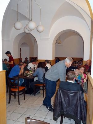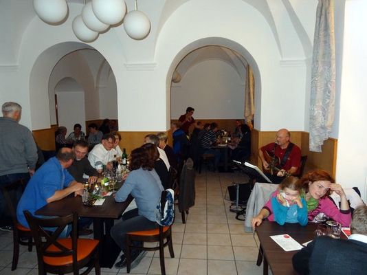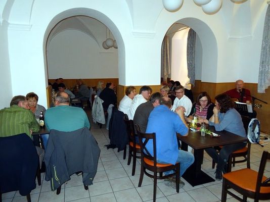Nach gesundheitlichen Ausfällen gleich mehrerer Musikanten griff Verwaltungsleiter Jürgen Zach selber zur Gitarre und unterhielt die gute gelaunte Gesellschaft bis spät in die Nacht mit internationalen Songs aus Jazz, Rock, Pop und Volksmusik. Mancher Gast meinte: „Bei dieser Musik der ‚dritten Wahl’, da kann man getrost länger sitzen bleiben!“ Im nächsten Jahr dann wieder.