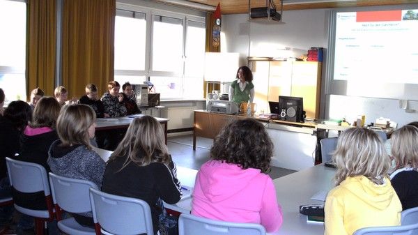 Die 21 Schülerinnen und Schüler der 8. Klasse haben noch ein wenig Zeit zur Orientierung. Für sie gab Frau Marina Fuchs, die zuständige Beraterin der Bundesagentur für Arbeit, zunächst einen Überblick über das ihr zur Verfügung stehende Repertoire an Hilfen zur Berufs- und Ausbildungsplatzfindung sowie den regionalen Ausbildungsstellenmarkt.